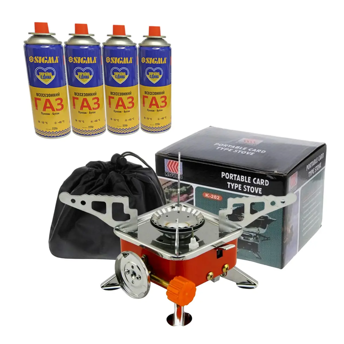 Пальник для кемпінгу портативний Kovar ZT-202 туристична плитка з п'єзопідпалом+4 балони