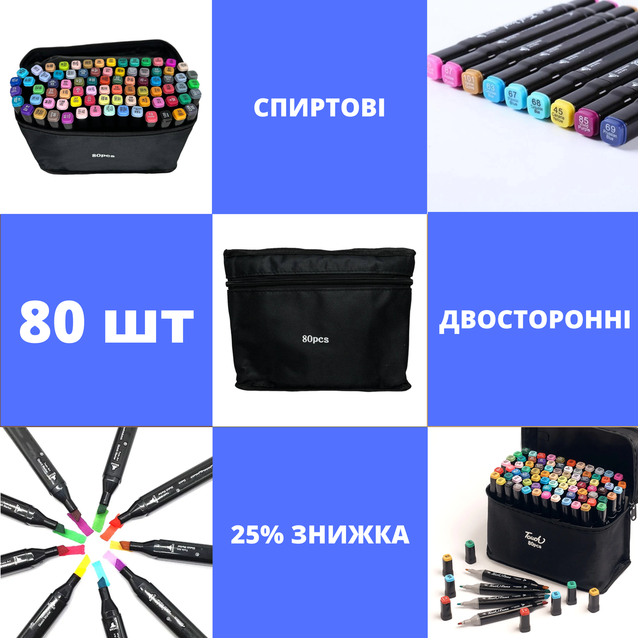 Отримайте цю позицію безкоштовно при покупці «80 маркерів різних відтінків у зручній сумці-чохлі для малювання. Фломастери двосторонні . Маркери 80»