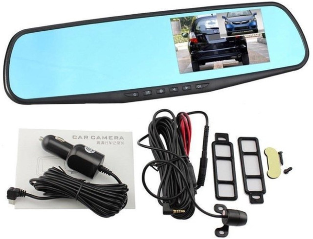 Чітке і якісне зображення виводиться на дисплей розміром 4.3 дюйма, а якщо монітор вимкнути, то прилад можна використовувати як стандартне дзеркало заднього виду. Передня камера пристрою має кут огляду в 170 градусів і фіксує яскраве виразне зображення, як при денному освітленні, так і в темний час доби.
