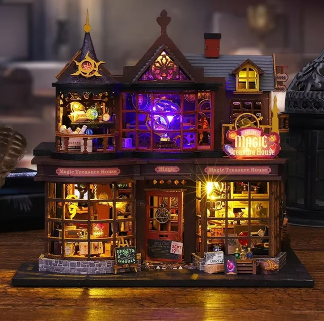 Magic Treasure House – це не просто ляльковий будиночок, а справжній мініатюрний світ, виконаний у стилі вінтажного європейського особняка з нотками фентезі. У кожній деталі – чарівність старовини, магічна атмосфера та унікальна історія, яку ви створите власноруч.
